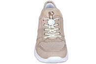 God travesko fra Rieker. Skoen er lavet i beige mesh. Skoen har hvide snørebånd med letluk, så den er let at komme i og af. Indvendigt er den foret med hvidt tekstil, og den har en blød antistress sål, som er behagelig at gå på. Skoen er med en hvid mellemsål. Slidsålen er en hvid slidstærk gummisål. God travesko til damer.