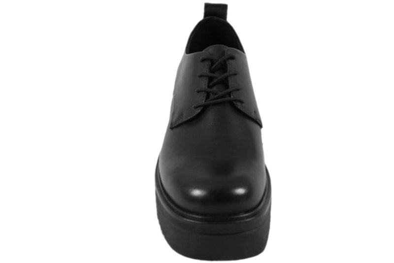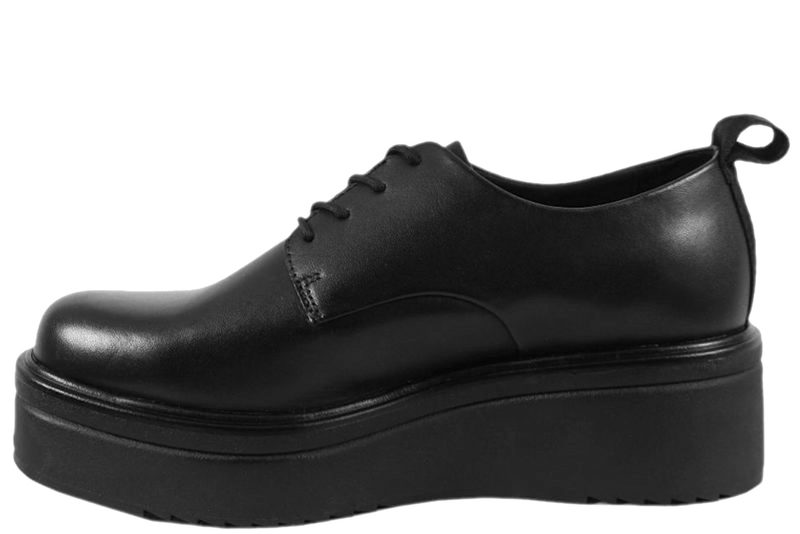 Super smart sko fra Vagabond, som er lavet i sort glat skind. Skoen er med snørebånd, så den let kan tilpasses efter foden. Indvendig er skoen foret med sort tekstil og har en skind dæksål. Skoen har en plateau sål, der måler 4 cm. Slidsålen er en slidstærk gummisål. Rigtig smart sko, med det helt rigtige look, som kan bruges til en hver lejlighed.
