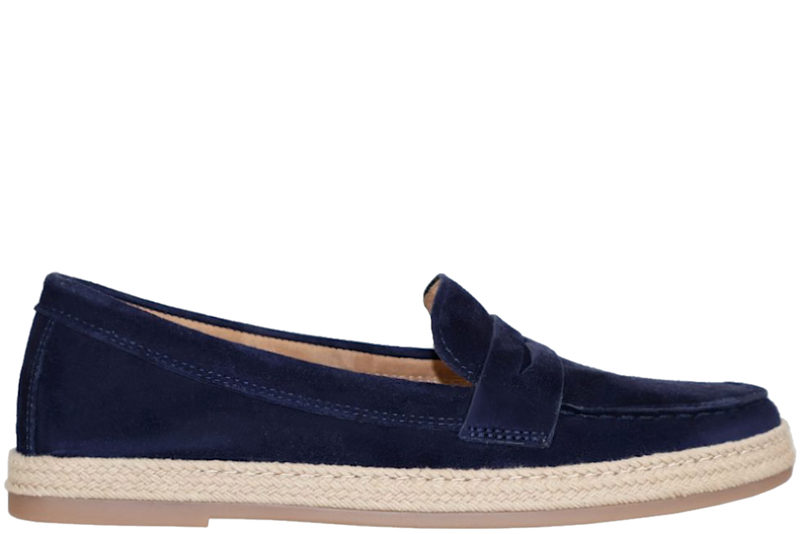 Super smart let loafers fra Gabor til dame. Skoen er lavet i mørkeblåt ruskind, med en moccasin syning på forbladet. Rundt ved kanten på skoen, er der en flot detalje med et flettet bånd. Indvendigt er skoen foret med brunt tekstil. Dæksålen er i brunt skind. Slidsålen er lavet i naturfarvet gummi.