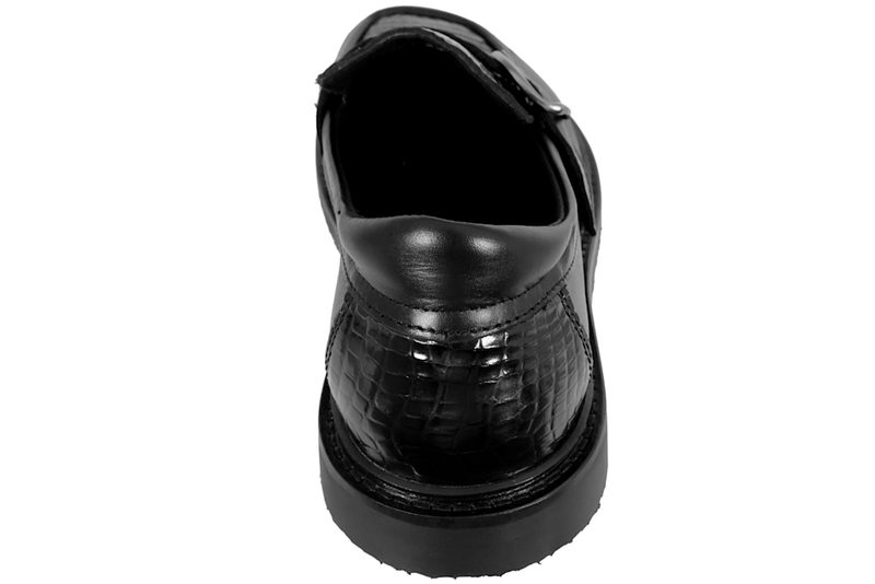 Super smart loafers fra New Feet i sort skind med kroko detaljer. Op langs vristen har skoen velcrorem, så den er let at tilpasse efter foden. Indvendigt er skoen foret med sort tekstil. Skoen har en lækker og brød gummisål, med en 6 mm. støddæmpende indlægssål. Skoen har en fast hælkappe, der holder foden i den rigtige position. Skoen er specielt lavet til vanskelige fødder såsom gigt og diabetes fødder. Skoen har en sort slidsål af rågummi. Super fin sko med komfort i top.
