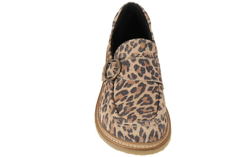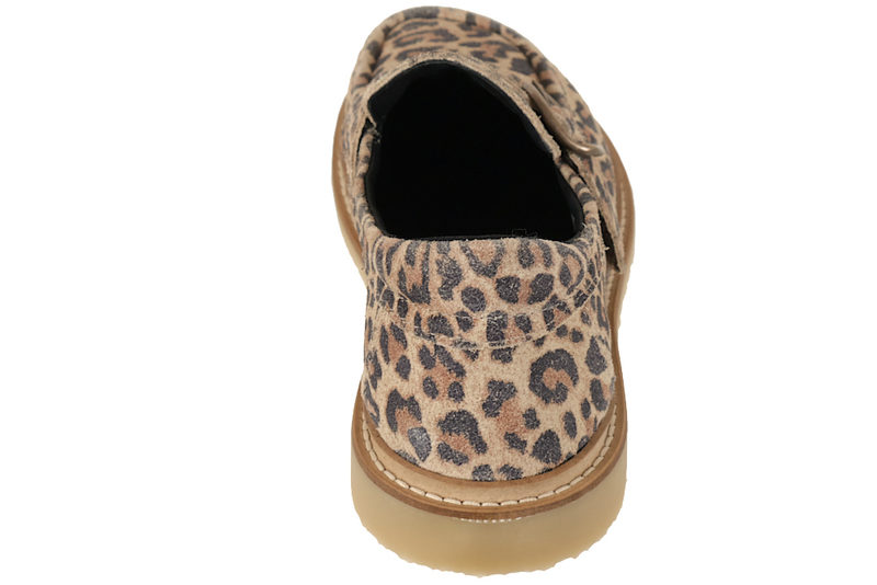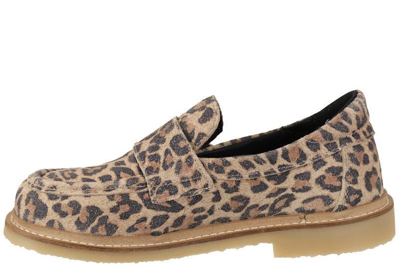 Super smart loafers fra New Feet til damer. Skoen er lavet i leopardprintet ruskind. Foran er der en velcrorem, som giver en smart detalje til skoen. Indvendigt er den foret med sort tekstil. Indlægssålen er 6mm og støddæmpende. Slidsålen er lavet af rågummi, så man står godt fast. Skoen har en fast hælkappe, der holder foden i den rigtige position. Skoen er specielt lavet til vanskelige fødder såsom gigt og diabetes fødder. Skoen har en lysegrå slidsål af EVA. Super fin sko med komfort i top.