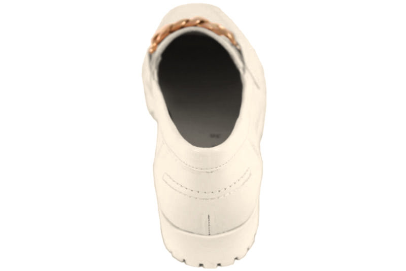 Super smart loafers til damer fra Softwalk. Skoen er i en fin off white farve. Skoen er lavet af skind og har et messingfarvet bidsel over vristen, som giver skoen en super smart detalje. Indvendigt er skoen foret med off white skind og har en skind dæksål. Slidsålen er en off white gummisål, som gør at man let kan stå fast. Fin loafers, som kan bruges til mange anledninger.