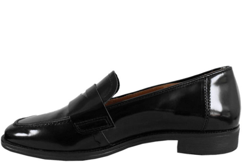 Super smart loafers til damer. Overdelen er lavet i sort polido skind. Skoen har en rem over vristen, som giver en fin detalje. Indvendigt er den foret med skind, samt en dæksål af skind. Der er en lille hæl på 1,5 cm. Slidsålen er lavet i sort gummi, så de er slidstærke. Alt i alt en pæn sko som kan bruges til både hverdag og fest.