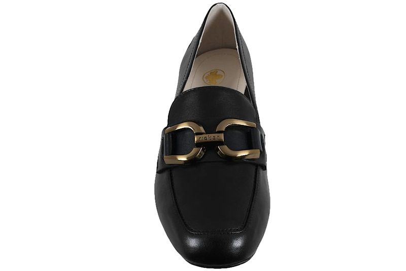 RIEKER PUMPS PÅ BLOKHÆL I SORT LÆDER.