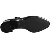 Sort pumps fra Tamaris i sort glat skind. De er med en lille tynd rem over vristen, som lukkes med et lille spænde og spændet er i mørkt sølv. Hælen er en blokhæl og den måler 4,6 cm. og har en anti-shock hæl, så den ikke er hård at træde ned på. De er ligeledes meget bløde i dæksålen, fordi den har Touch it, som er en ekstra polstret dæksål. Dæksålen er også i skind. Slidsålen er en tunitsål. Meget klassisk sko som er meget feminin i udtrykket og kan bruges til både bukser, kjole og nederdele.