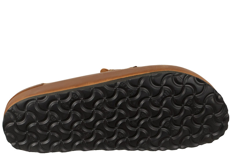salg af BIRKENSTOCK NAPLES WRAPPED SLENTERS I COGNACFARVET OLIERET SKIND