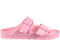 BIRKENSTOCK. Let bade slenters fra Birkenstock til damer. Sandalen er lavet i PU så den kan tåle vand. Sandalen har to justerbare remme med sorte spænder. Den ene er over forfoden og den anden er over vristen, så den let kan tilpasses til foden. Alt på sandalen er hvidt, både sålen og overdelen. Birkenstock er kendt for deres konstrueret fodbåde, som er anatomisk opbygget så de giver den rette støtte til foden. Den særlige udformning af sålen, aflaster kroppen og fordeler belastningen rigtigt. Med et par Birkenstock går man godt.