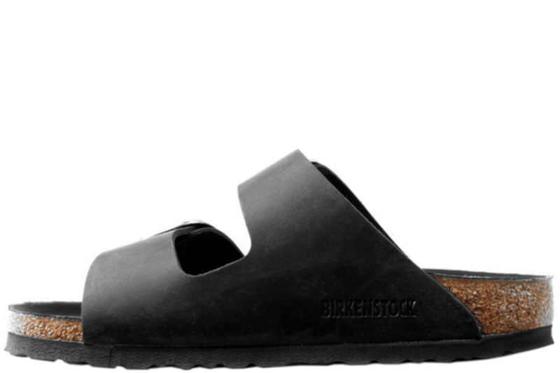 Smart slenters fra Birkenstock. Model Arizona. Sandalen er med to metal look spænder, som giver et smart look. Spænderne giver mulighed for selv at justere efter eget behov. Sandalen er lavet i sort olieret skind, Dæksålen er lavet i sort skind, mellem sålen i kork og slidsålen i sort EVA. Birkenstock produkter er helt unikke. Birkenstock er anatomisk opbygget og giver foden den optimale støtte. Birkenstock særlige udformning aflaster kroppen og fordeler belastningen rigtigt - derfor går du altid godt i et par Birkenstock.