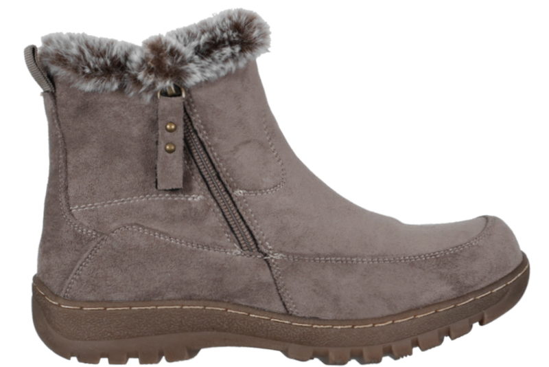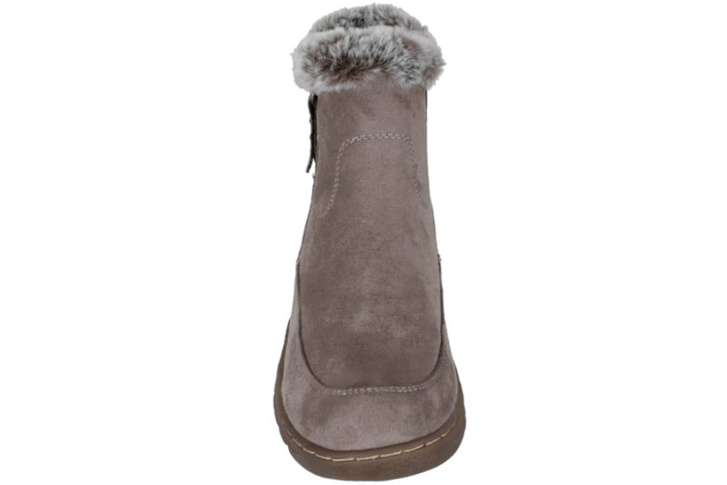 Super smart vinterstøvle fra 5th Avenue til dame. Støvlen er lavet af taupe tekstil, med en lynlås på ydersiden, så den er nem at komme af og i. Indvendigt er støvlen foret med gråt foer. Sålen er lavet af lysebrunt gummi, så man står godt fast. En super smart vinterstøvle til dame.