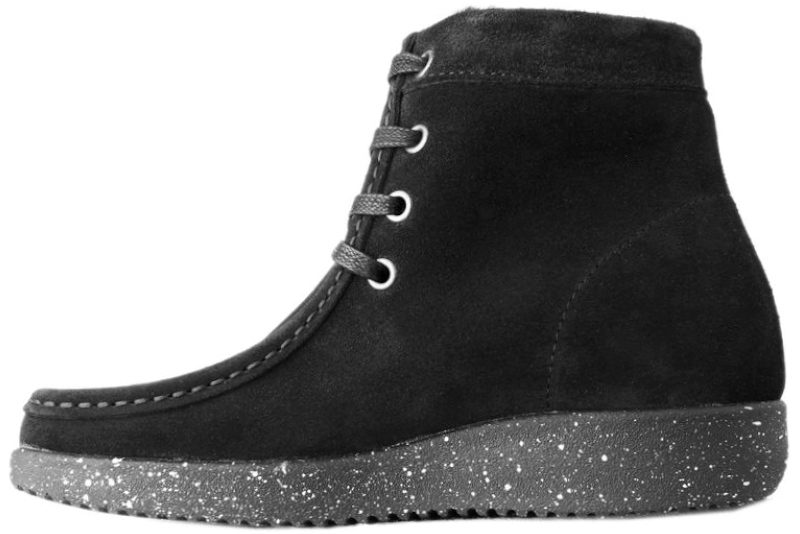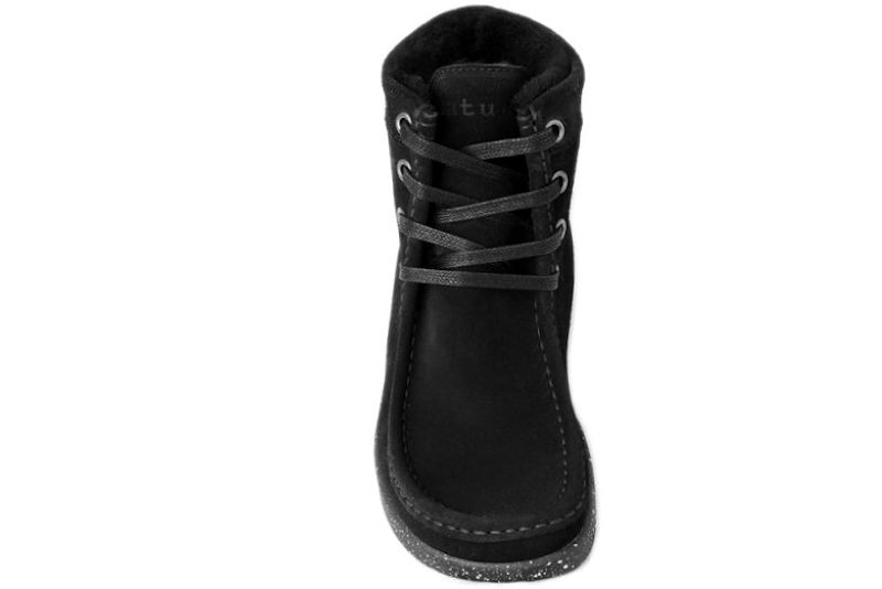 Støvle fra Nature i sort ruskind med en lækker pasform. Støvlen har snørebånd foran der er lavet i økologisk bomuldstråd. Indvendig er den foret med varmt blødt for i sort. Slidsålen er en sort letvægtssål med hvide prikker. Dette er støvlen, som du aldrig har lyst til at tage af. Super smart og miljøvenlig støvle fra Nature.