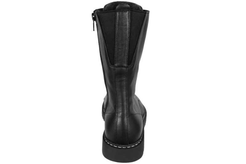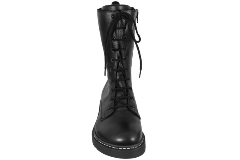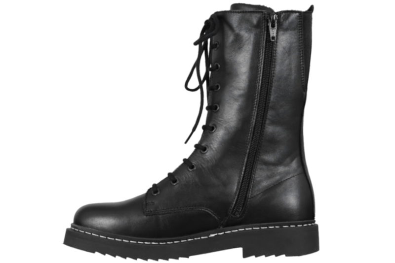 Super smart halv lang støvle fra New Feet til damer. Støvlen er lavet af sort glat skind. Foran er der sorte snørebånd, så den kan tilpasses efter benet. På indersiden er der en lynlås, så den er let at komme i og af. Støvlen er god til diabetikere, gigtpatienter, og generelt folk med følsomme fødder, det er de på grund af deres lækre såler. Der er ikke nogle generende indvendige syninger, der kan provokere fødderne. Så er der god plads til fødderne, hvilket er vigtigt for alle fødder. Slidsålen er en sort gummisål.