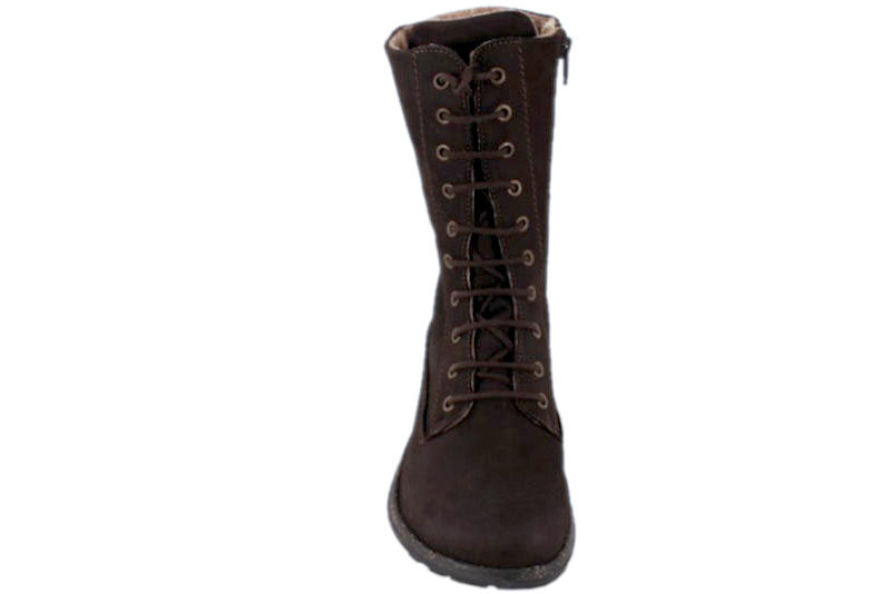 Lækker støvle fra New Feet i brunt olieret skind. Støvlen har snørebånd og lynlås på indersiden. Indvendigt er støvlen foret, så den er dejlig varm. Dæksålerne er som altid New Feet's super behagelige 6 mm. såler, som er utrolige lækre at gå på. Det er en støvle der er god til diabetikere, gigtpatienter, og generelt folk med følsomme fødder. Der er ikke nogle generende indvendige syninger, der kan provokere. Der er god plads til fødderne, hvilket er vigtigt for alle fødder. Alt i alt en rigtig god vinterstøvle til damer fra New Feet.