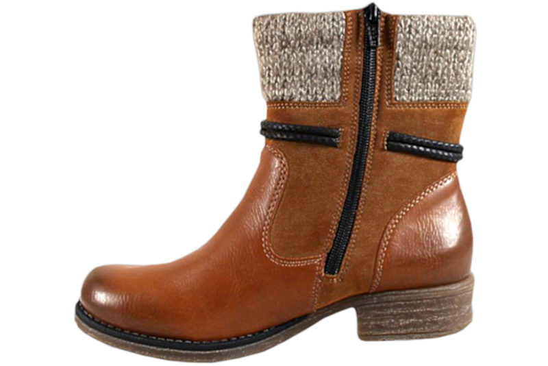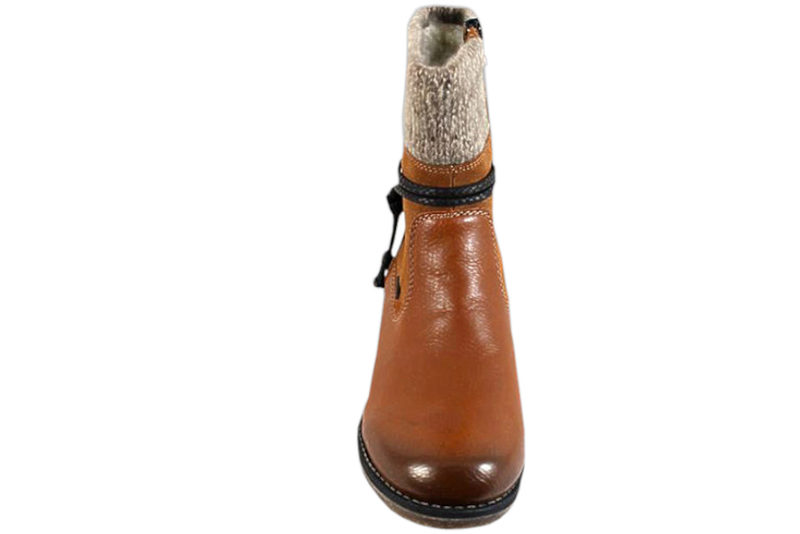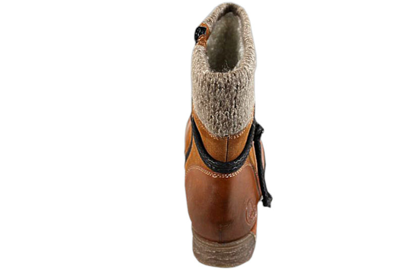 Super fin vinterstøvle med foer til kvinder. Støvlen er lavet af syntetisk materiale . Skoen er med riekerTEX, der gør støvlen vandtæt. På siden er der en sort lynlås, som gør støvlen nem at komme i. Den har en sort dekorativ snørre, som folder sig rundt om skoen. Indvendigt er skoen foret med hvidt og gråt tekstil, som følger åbningen af skoen. Støvlen har en sort dæksål i uld. Slidsålen er lavet af naturfarvet gummi, så man står godt fast.