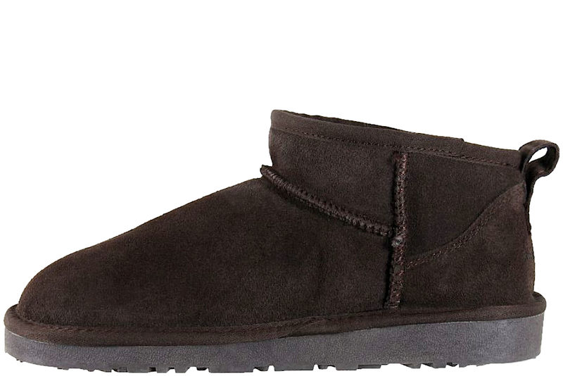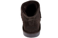 Super smart bamsestøvle med kort skaft. Støvlen er lavet af ruskind i farven "dark brown". Indvendigt er den foret med mørkt blødt plys, som holder fødderne lune. Slidsålen er en gummisål i samme farve som støvlen, så man står godt fast.