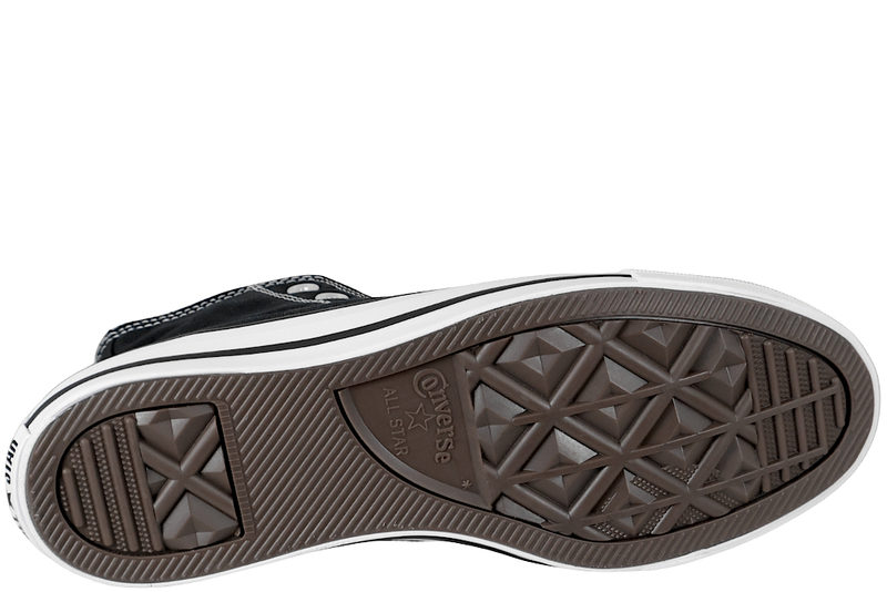 Super smart sko fra Converse med skaft. Skoen er lavet af sort tekstil, op langs vristen er der hvide snørebånd, så den kan tilpasses efter foden. Indvendig er den foret med tekstil. Mellemsålen er en hvid gummisål. Slidsålen er en naturbrun gummisål.