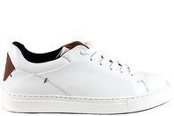 Super smart sko til herre. Skoen er lavet af hvidt glat skind. Op over vristen er der hvide snørebånd, så den kan tilpasses efter foden. Indvendigt er den foret med mørkeblåt tekstil og har en tekstil indlægssål. På ydersiden af sålen er der blå, hvide og røde striber, fra Hilfiger logoet. Slidsålen er en blå gummisål, så man står fast.