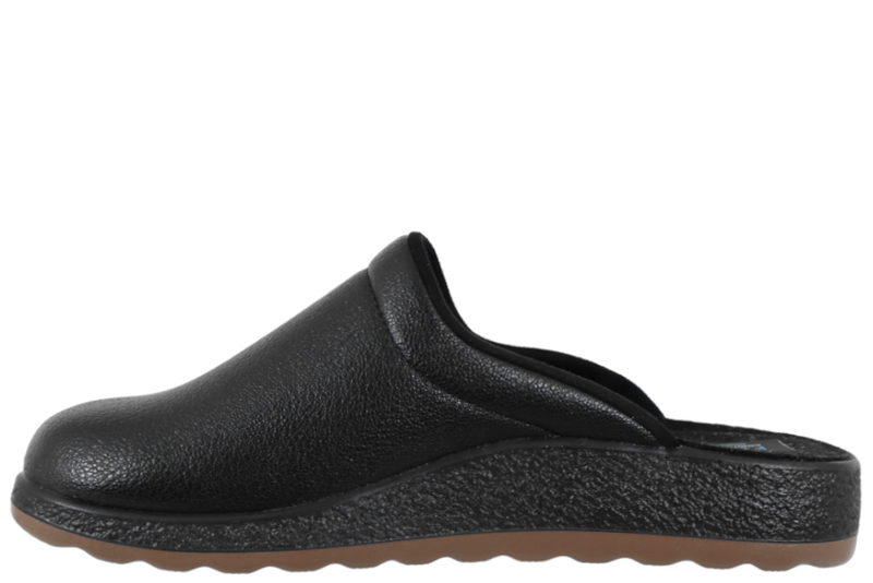 Klassiske og praktiske hjemmesko designet specifikt til mænd i sort med en brun PVC slidsål. Disse hjemmesko er fremstillet af højkvalitets syntetiske materialer, der sikrer holdbarhed og en blød fornemmelse ved hver skridt. Det enkle design gør dem til et tidløst valg, der vil komplementere enhver afslappet garderobe.