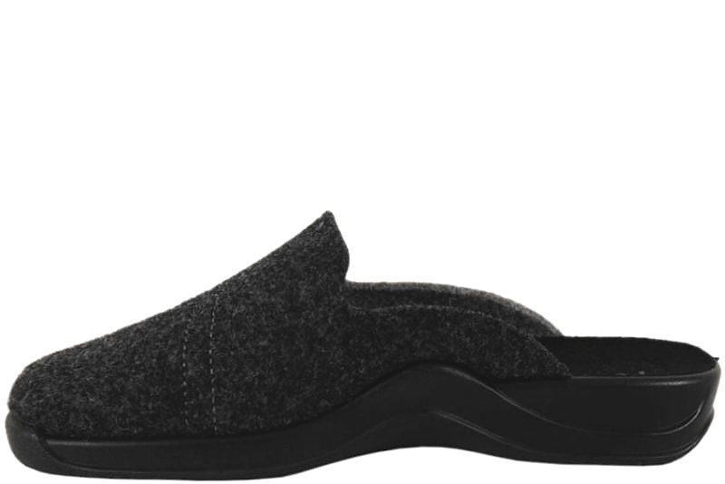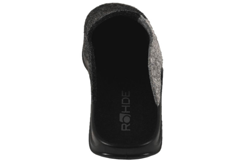 Super god hjemmesko fra Rohde til herre. Hjemmeskoen er lavet af mørke- og lysegråt filt. Indvendigt er den foret med sort filt og har en dæksål i filt, hvor der er støtte til forfoden. Slidsålen er en sort gummisål, så man også lige hurtigt kan smutte ud i dem.
