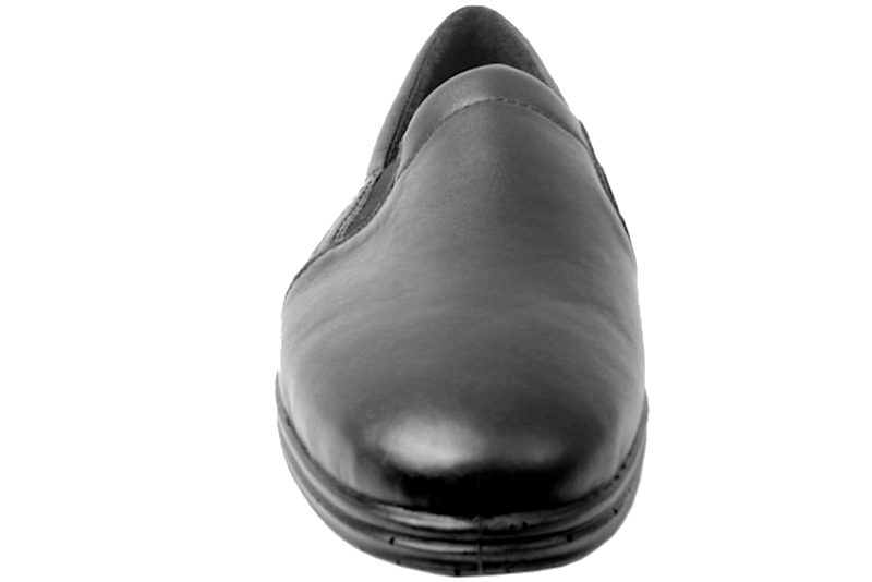 Hjemmesko i sort galt skind med hælkappe. Der er elastik over vristen, så den er nem at komme i og af. Sålen er sort og kan holde til at gå en smut ud i. Indvendig er den let foret. De har en perfekt pasform.