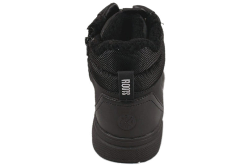 Sort vinterstøvle til herre og drenge. Støvlen er lavet i sort syntet, og støvlen er med sympatex, så den er 100% vandtæt. Støvlen er lavet af genbrugsmateriale og er meget åndbar, samt vindtæt. Støvlen er med sorte snørebånd med hvide prikker. På hælkappen er der en strop, hvorpå der står Roots. På indersiden er der en lynlås, så den er nem at komme i og af. Indvendigt er dem foret i sort foer. Super smart vinterstøvle til mænd og drenge.