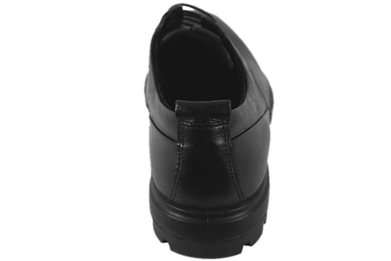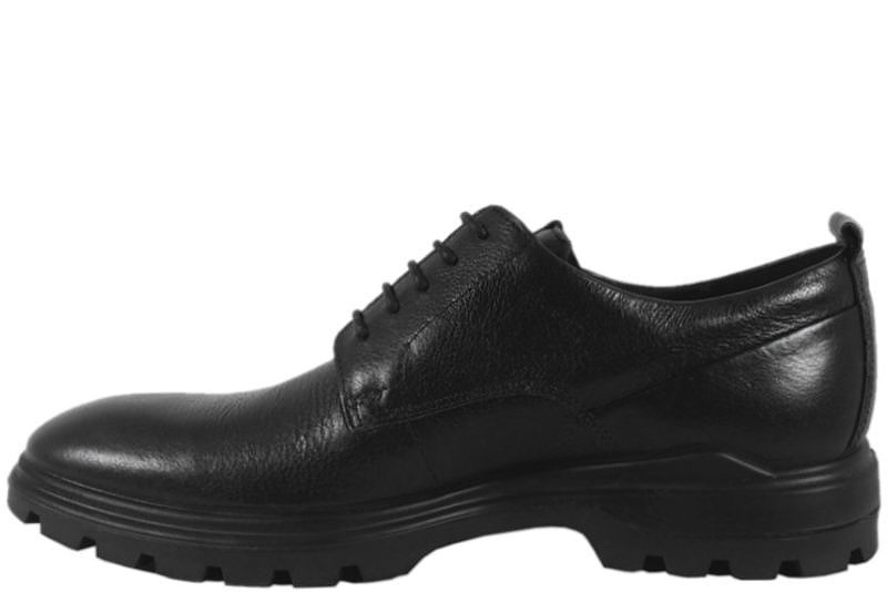 Sort herresko fra Ecco i glat skind. Foran er der sorte snørebånd, så man nemt kan justere den til foden. Indvendigt er der en blød sål i skind, som er udtagelig. Skoen har en grov slidsål med et fedt udtryk. Super smart og komfortabel sko fra Ecco.
