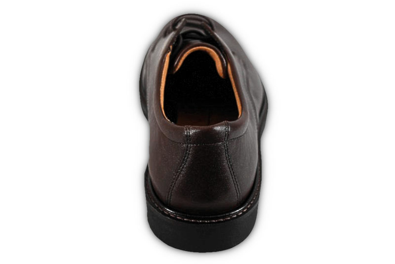 Super smart sko fra Ecco til herre. Skoen er lavet i mørkebrunt glat skind. Foran er der mørkebrune snørrebånd, så skoen let kan justeres efter foden. Indvendigt er den foret med skind og har indlægssål ligeledes i skind. Slidsålen er lavet af sort gummi, så man står godt fast. Alt i alt en smart sko til mænd.