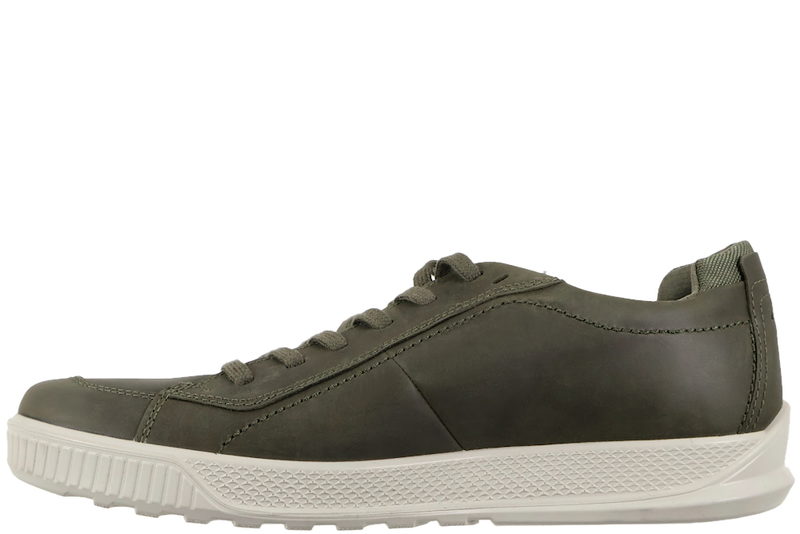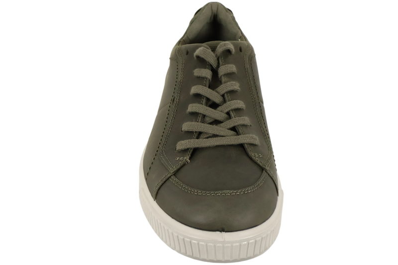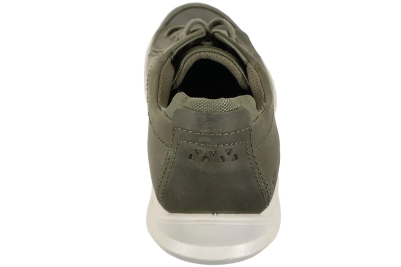 Super god sko fra Ecco til herre. Skoen er lavet af grønt olieret skind. På hælkappen er der skåret små trekanter i læderet. På ydersiden af hælen er Ecco's logo trygt ind i læderet. Foran er der grønne snørebånd, så den kan tilpasses efter foden. Indvendigt er den foret med grå tekstil, og den har en grå indlægssål i tekstil. Slidsålen er en grå gummisål, så man står godt fast. Super smart sko til herre.