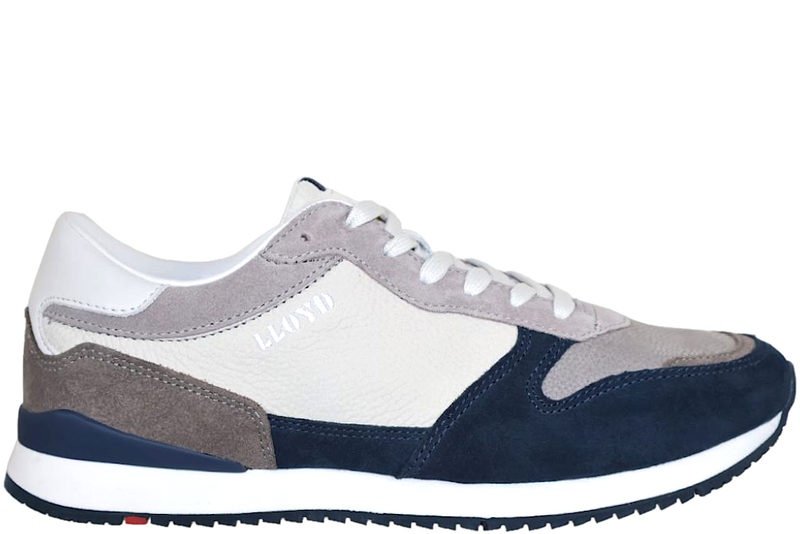 Super smart sko fra Lloyd til herre. Skoen er lavet i mørkeblåt, mørkegråt og lysegråt ruskind, samt råhvidt og hvidt skind. På ydersiden står der "LLOYD" i grå/sølv skrift. Skoen er med hvide snørebånd, så man nemt kan tilpasse skoen efter foden. Indvendigt er skoen foret med hvidt skind, samt en indlægssål i hvidt skind, med svangstøtte. Mellemsålen er i hvidt PU. Slidsålen er i mørkeblåt gummi, så man står godt fast. En sko der både kan bruges til fest og hverdag.