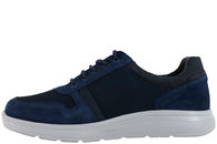 Super god herresko fra New Feet. Skoen er lavet af blåt olieret skind og tekstil. Foran er der blå snørebånd, samt en lynlås, så den er let at komme i og af. Indvendigt er den foret med gråt tekstil og har en 6 mm. indlægssål, som skåner knæ og ryg. New Feet er kendt for deres gode pasform. Der er ingen indvendige syninger. De egner sig særligt til folk med gigt og diabetes. Slidsålen er en grå PVC sål.