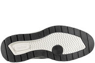 Super smart sko fra Rieker til herre. Skoen er lavet af sort tekstil samt mesh. Foran er der sorte/grå elastik snørebånd, så skoen er let at komme i og af. Op af hælkappen og langs kanten er skoen brun, hvilket giver en smart detalje. Indvendigt er den foret med sort tekstil. Skoen har de velkendte antistress indlægssåler i læder, der er dejlig bløde. Mellemsålen er off white. Slidsålen er af sort og hvidt gummi, så man står godt fast. Super smart sko til mænd.