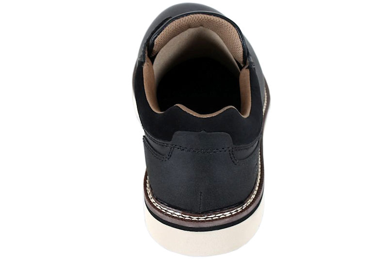 Pæn sort snøresko fra Rieker til herre. Skoen er lavet i sort glat skind og PU. Indvendigt er den foret med brunt glat skind. Dæksålen er den velkendte antistress sål, med ekstra vidde. Rundt ved sålen er der en lys stikning, som giver en fin detalje. Slidsålen er lavet i hvidt PU. Flot sko der kan bruges til festlige lejligheder og hverdag.