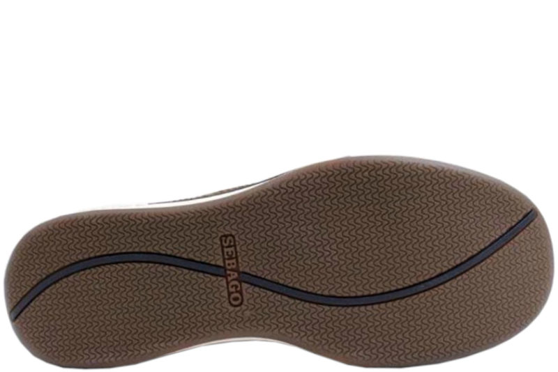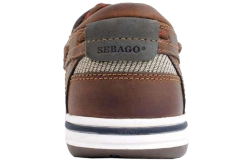 Brun sejlersko i olieret skind fra Sebago. De har brune snørebånd, som gør det nemt at tilpasse dem efter foden. Slidsålerne er hvide med en sort streg. Dæksålerne er med stødabsorbering og en god komfort.