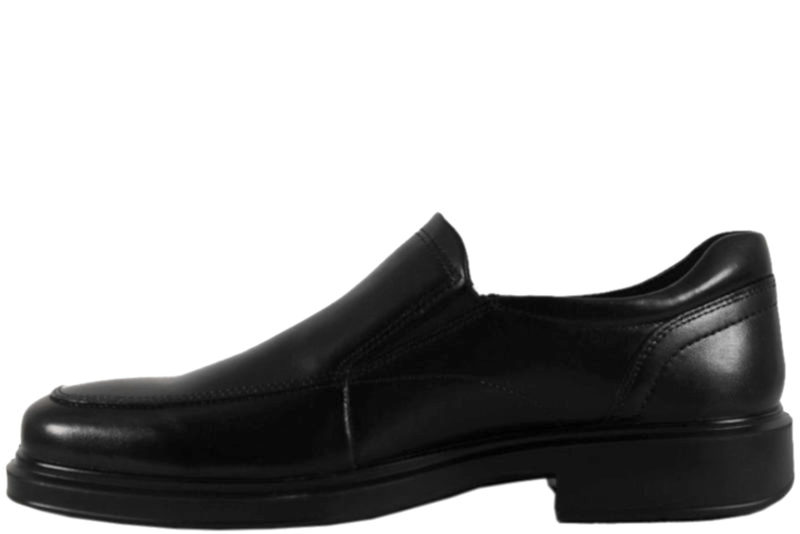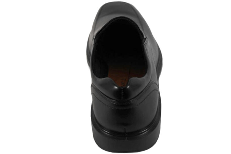 Sort hyttesko i skind med elastisk i siderne, der gør at den sidder godt på foden. Skoen har indlægssåler i skind, der giver en behagelig følelse. Den er med slidstærke gummisåler og støddæmpende effekt i hælen. På forbladet er der syninger. Meget klassisk sko i en god kvalitet.