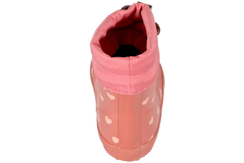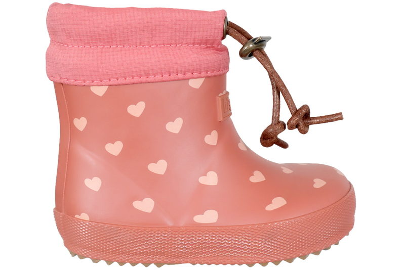 Super fin termostøvle fra Bisgaard til piger. Termostøvlen er lavet af naturligt gummi i farven "ruby", med hjerter, som giver et sødt look. Øverst på skaftet er der pink tekstil med snøre, så den kan tilpasses efter barnets fod. Indvendigt er den foret med varmt lækkert foer. Slidsålen er en brun gummisål. God Termostøvle til piger.