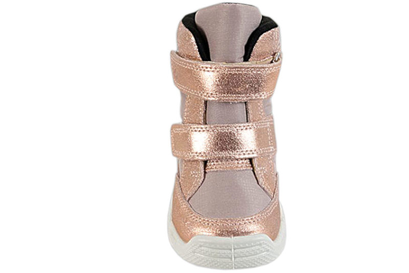 Super god støvle fra Ecco til piger. Støvlen er lavet af rosa tekstil og skind med glimmer effekt. Over vristen har støvlen to velcroremme, som gør støvlen let, at justere efter foden. Støvlen er foret med sort foer, og har en sort foret indlægssål. Denne model er med Gore-Tex, som gør den er vandtæt. Slidsålen er lavet af hvidt PU. Rigtig god støvle der holder fødderne varme på de kolde vinterdage.