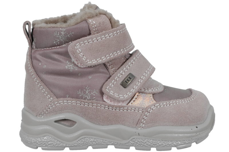 Super fin vinterstøvle fra Imac til pige. Støvlen er lavet af en kombination af støvet lilla nubuck og tekstil. Støvlen er detaljeret med sølv snefnug, som giver et sødt look. Indvendigt er den foret med grå, lunt for. Støvlen har en filt indlægssål. Mellemsålen er lavet af grå EVA. Slidsålen er en slidstærk støvet lilla gummi sål, med stødabsorbering. Støvlen er med Tex, så den holder fødderne tørre. Rigtig god støvle, der kan bruges til meget.