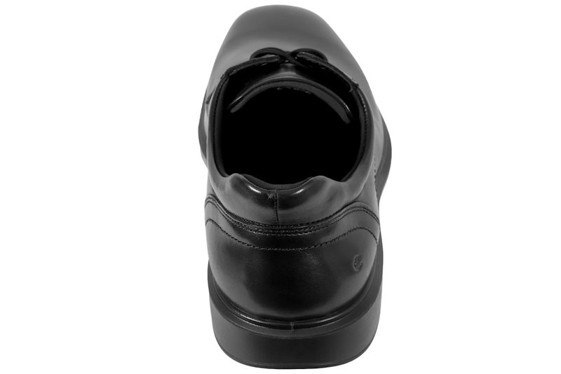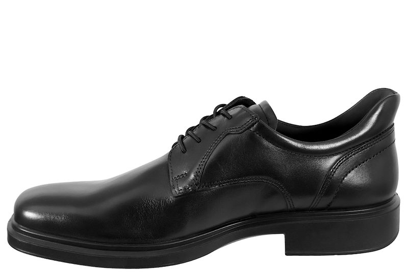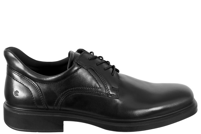 Super smart herre sko fra Ecco. Skoen er lavet af sort glatskind. Op langs vristen har skoen sorte elastik snørebånd som gør den sidder godt fast til foden men også er let at komme i og af. Indvendig er skoen foret med sort tekstil og har en sort skinddæksål. Slidsålen er en sort formstøbt PVC sål. Ved hælkappen har skoen en forsejling som gør den let at svuppe i.