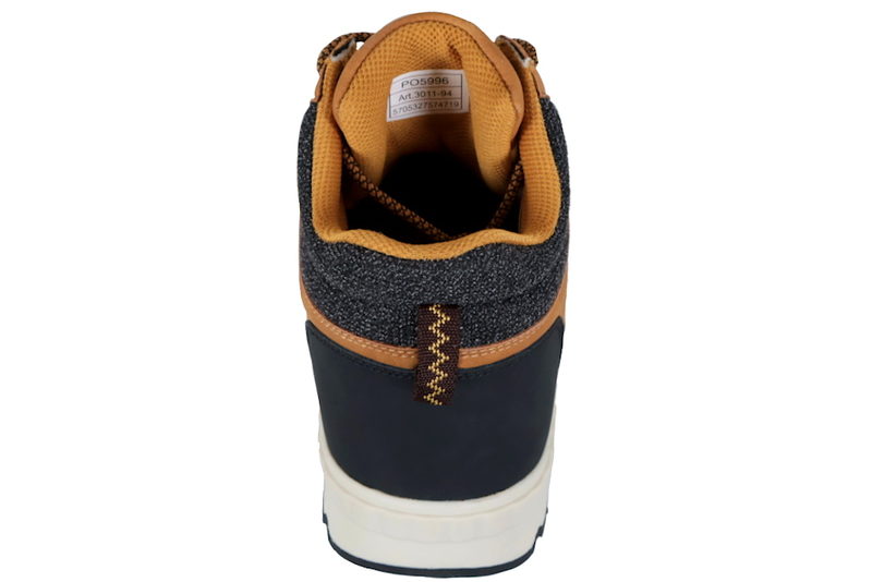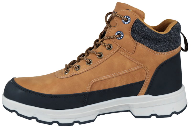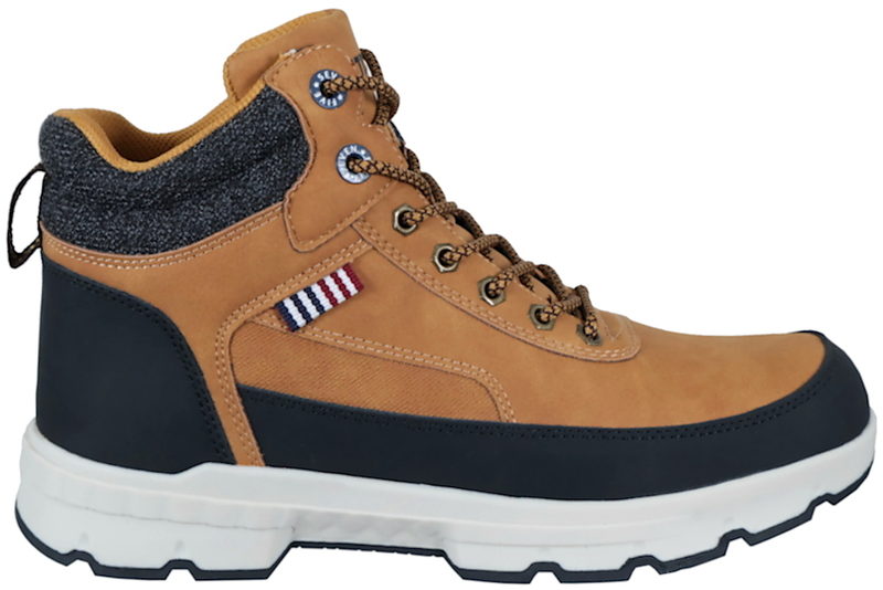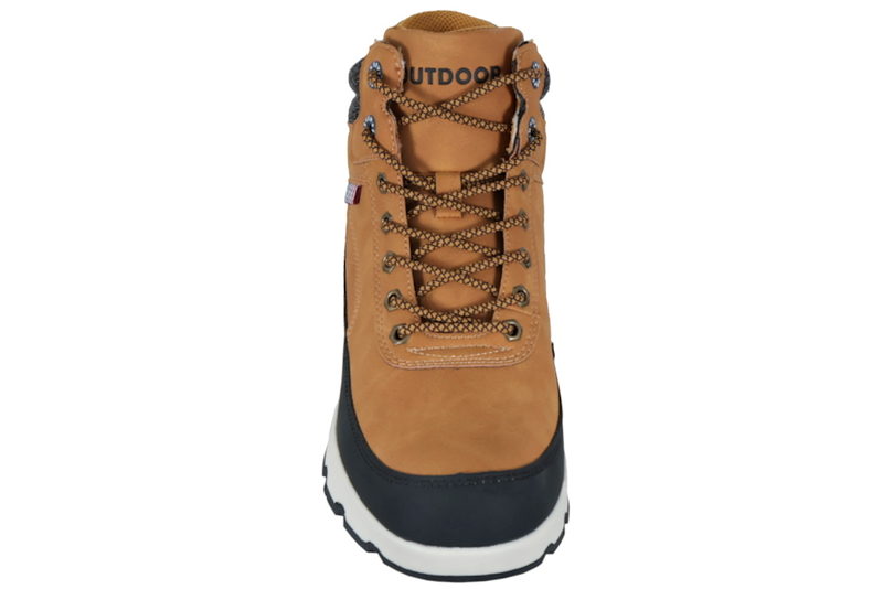 Super smart støvle fra mærket Outdoor til herre. Støvlen er lavet i PU i farven gul, med sorte detaljer. Støvlen er med snørebånd, så man nemt kan justere støvlen efter behov. Indvendigt er støvlen foret med sort og gult tekstil. Slidsålen er lavet i sort PVC med mønster.
