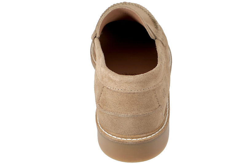 Super smart loafers fra Playboy til herre. Den er lavet i farven sand i ruskind. Foran er der en mokkasinsyning, som giver et smart look. Indvendigt er den foret med brunt tekstil, og den har en brun dæksål, der er dejlig blød. Slidsålen er en natur brun gummisål. God loafers med et smart og enkelt look.