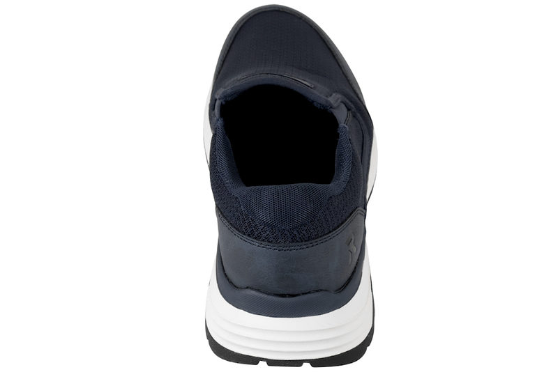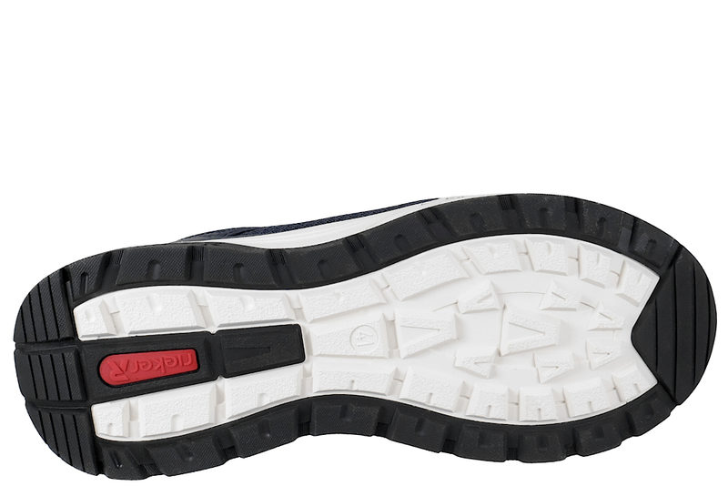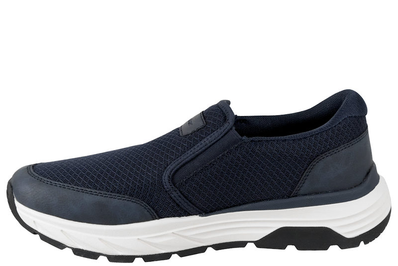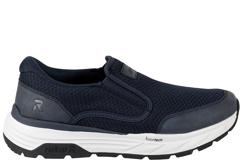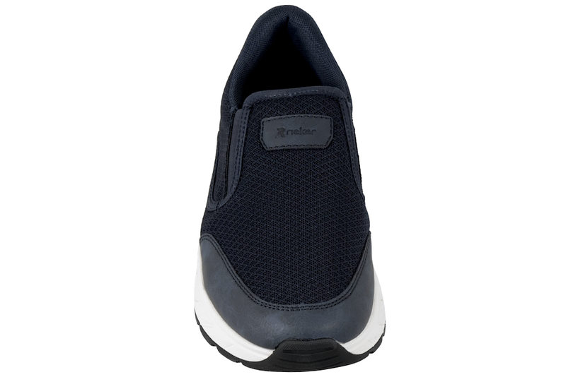 Super fin hyttesko fra Rieker til herre. Skoen er lavet af blå tekstil og PU. I begge sider af skoen er der blå elastik, så den er let at komme i og af. Indvendigt er den foret med blå tekstil og den har en Soft indlægssål. Mellemsålen er en hvid PVC sål. Slidsålen er en sort gummisål, så man står godt fast. Rigtig god sko til mænd.