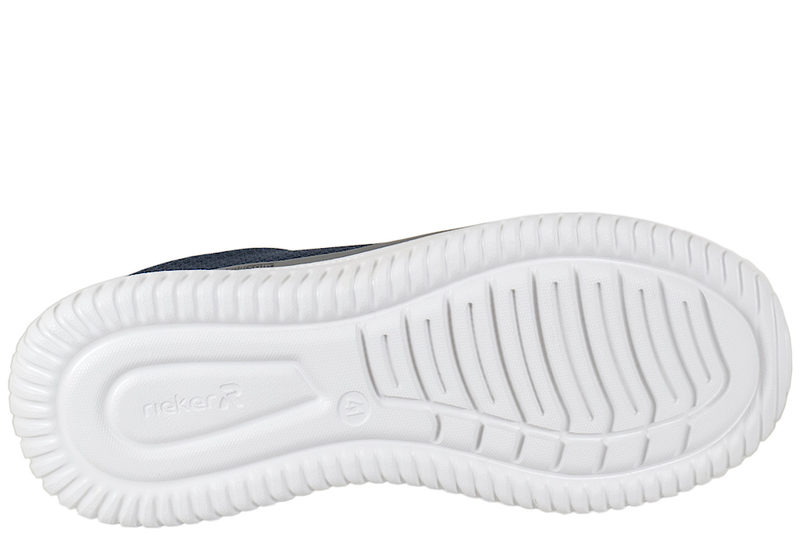 God sko fra Rieker, til herre. Skoen er lavet af mørkeblå mesh. Foran er der matchende pynte elastik snørebånd. På ydresiden står der Rieker med grå. Indvendig er den foret med blå tekstil, og har en blå tekstil dæksål. Sålen er en lightsole, som gør den blød og fleksibel. Slidsålen er en hvid PVC sål. Skoen er let, så du mærker ikke at du har dem på.
