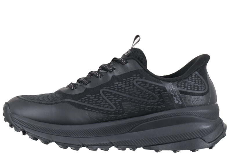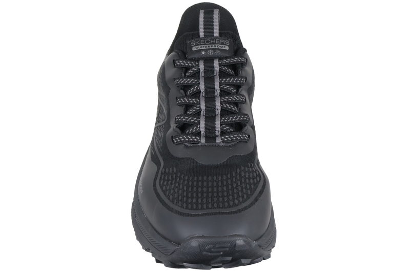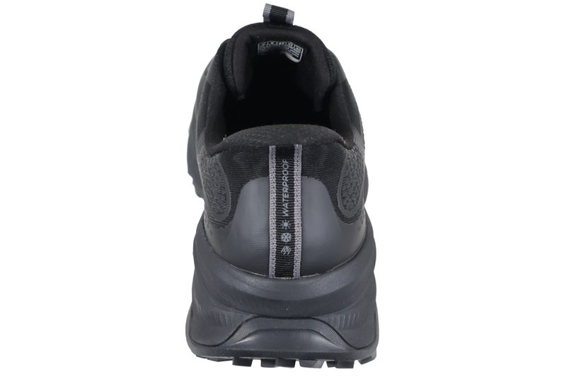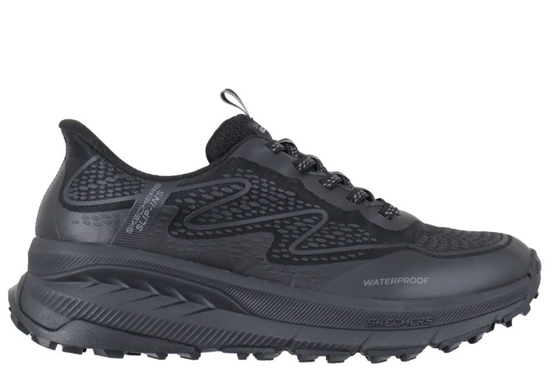 Super smart og praktisk sko fra Skechers til herre. Skoen er lavet af sort tekstil, med en vandtæt membran. Op langs skoen er der elastik snørebånd. Indvendigt er skoen foret med sort tekstil. Skoens dæksål er i sort tekstil, og den har Skechers kendte Air-Cooled Memory Foam. Skoen er med Slip-Ins, så den er nem at komme i og af. Mellemsålen er lavet af sort EVA. Slidsålen er af sort PVC. Virkelig god og praktisk sko til alt slags vejr.