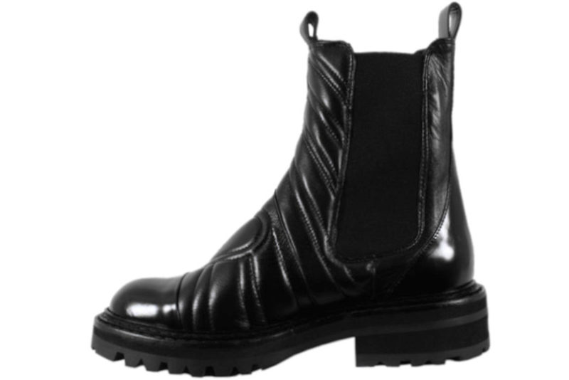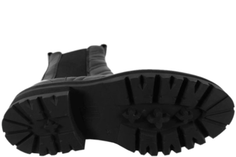 Sort støvle fra Billi Bi i sort glat skind med syninger og puder i skindet. Slidsålerne er en chunky sort profilsål og med elastik i begge sider, så de er nemme at træde i og af. Indvendigt er den foret med sort skind. På vristen er der et hjerte i skindet. Super sej støvle fra Billi Bi med en god pasform og med et fedt look.
