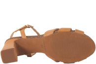 Super smart sandal med hæl fra Cashott. Sandalen er lavet af lysebrunt glat skind. Foran er der nogle remme, som danner et mønster, som giver et flot look. Sandalen er med en rem omkring anklen, så den kan justeres efter behov. Indvendigt er den foret med glat skind, og har en blød og behagelig dæksål. Slidsålen er en brun gummisål, så man står godt fast. Hælen måler 7 cm.