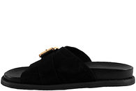 Super smart slenters fra Copenhagen Shoes til damer. Sandalen er lavet af sort ruskind. Foran er der et pyntespænde, som giver et smart look. Indvendigt er den foret med sort glat skind og har en dæksål ligeledes i glat skind. Slidsålen er en sort gummisål. God slenters til den danske sommer.