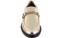 Super smart loafers fra Copenhagen Shoes i farven guld. Skoen er lavet af guldfarvet skind. Over forfoden har skoen et bidsel i form af en guldkæde. Indvendigt er skoen foret med guld skind og har en dæksål ligeledes i skind. Slidsålen er lavet af brunt gummi. Super smart loafers der kan pifte ethvert outfit op.