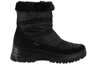 Sort damestøvle med varmt foer. De er produceret i tekstil samt ruskind. De er med IMAC tex, som gør støvlerne er 100% vandtætte. Indvendigt er de foret med dejligt varmt foer, og man træder på en varm filtsål. Slidsålen er en sort gummisål, der har et godt vejgreb. Perfekt varm støvle til kolde og våde dage.