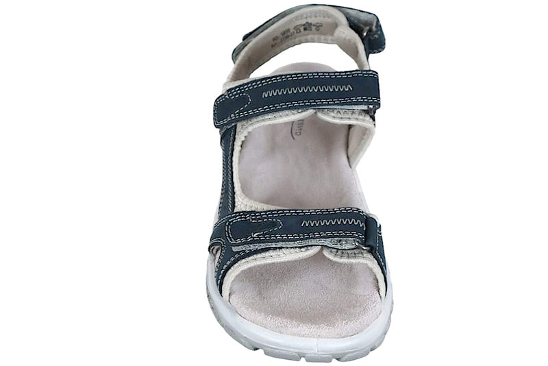 Rigtig god sandal fra Reserved til damer. Sandalen er lavet i lysegrøn tekstil og denim blå nubuck med lysegrønne stikninger. Sandalen har to remme over foden og en på hælen, hvilket gør sandalen nem at justere efter foden. Sandalen er foret med gråt tekstil. Mellemsålen er lysegrå og slidsålen grå. Rigtig god sandal til hverdag.