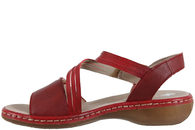 Super smart rød sandal fra Rieker. Sandalen er lavet af rødt glat skind. Over forfoden har sandalen en rød velcrorem, så sandalen er let at justere efter foden. Over vristen samt ved insteppet er to remme, som forbindes med velcro ved anklen, som gør sandalen let at komme i. Sandalen er med hælrem, så den sidder godt fast på foden. Indvendigt er sandalen foret med lyst tekstil og har en lys dæksål i PU. Slidsålen er lavet af brunt PVC. Super smart sandal til damer.
