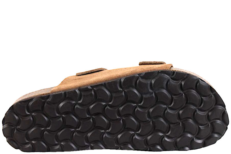 Super smart slenters i lysebrunt ruskind fra Skvulp. Modellen er med to brede remme over foden. På remmene er der to metalspænder, så den kan reguleres helt perfekt til din fod. Dæksålen er lavet i naturfarvet ruskind, der er blødt at gå på. Dæksålen er anatomisk opbygget og giver foden den optimale støtte. Mellemsålen er lavet af kork og slidsålen er af brunt EVA. Rigtig god slenters, der både er smart og komfortabel.